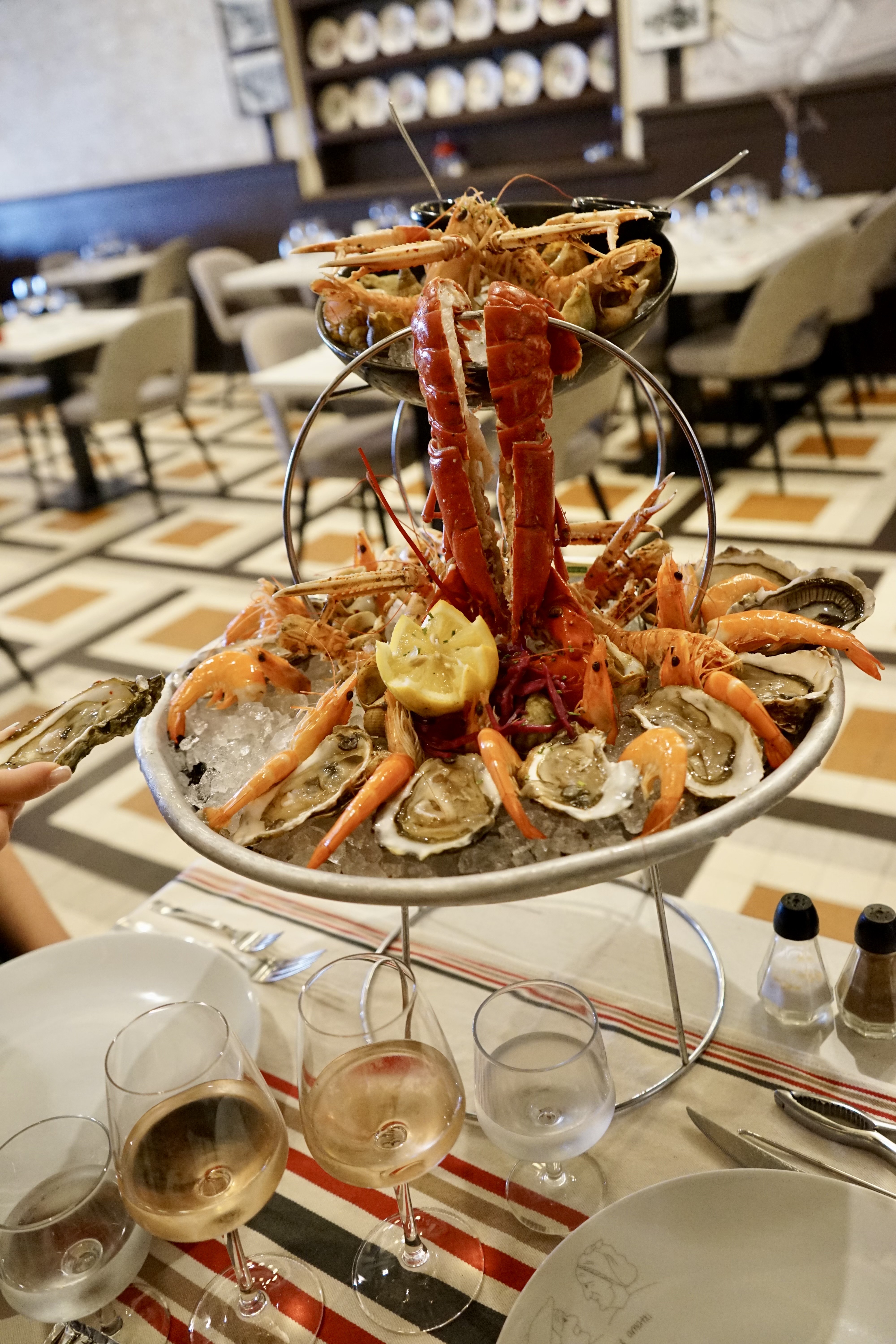 Homard entier, langoustines, huitres, bulots, crevettes